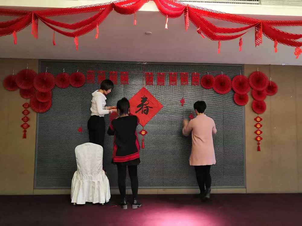 我們行政的同事們自己設(shè)計布置會場,初進會場只覺“充滿年味” 。